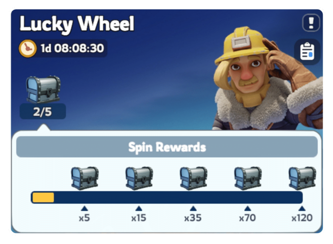 Throughout the three-day event, players have the chance to unlock exclusive milestone rewards by reaching certain spin counts on the Lucky Wheel. These rewards are only available once per event, emphasizing the importance of consistent participation. Unlike daily bonuses, milestone rewards are cumulative and reflect overall engagement during the entire period, offering valuable boosts to the player's progress.