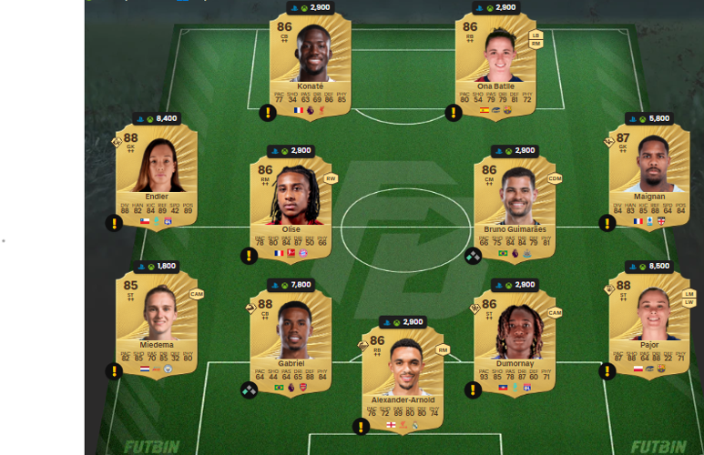 Pour composer une équipe conforme aux règles, il est indispensable d'inclure au moins un joueur anglais. De plus, la note globale de l'effectif doit atteindre au minimum 86 points.