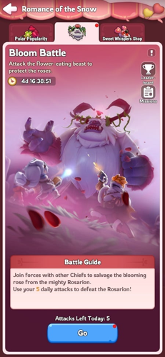 To add an element of strategic collection, any unclaimed items left at the end of the event are converted into a substantial reward: 1,000 secured resource supply chests. These chests can provide valuable resources to help advance your progress. Whether you choose to exchange the rose bouquet for social benefits or save it for gifting, this event offers a delightful way to enjoy the season's festivities and foster connections with fellow players.